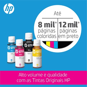 | Cartuchos substitutos | Frasco de tinta original HP GT53 de 90 ml 1VV22AL; Frasco de tinta original HP GT52 ciano M0H54AL; Frasco de tinta original HP GT52 magenta M0H55AL; Frasco de tinta original HP GT52 amarelo M0H56AL; Frascos de tinta original HP GT52 ciano/magenta/amarelo, pacote com 3 X4E44AL. Para obter mais informações sobre recarga e rendimento, acesse http://www.hp.com/go/learnaboutsupplies |