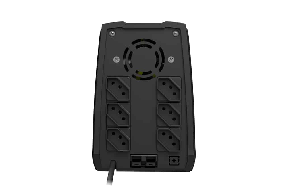 Oferece ainda 6 tomadas tripolares de 10A. Microcomputadores, sistemas de CFTV, equipamentos eletrônicos e de telecomunicações podem ser protegidos e alimentados pelos Nobreaks desta linha.