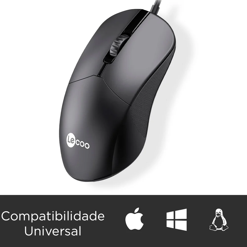 Mouse Com Fio USB Lenovo Lecoo M1102 – Simplicidade, Conforto e Precisão O Mouse Lenovo Lecoo M1102 é uma solução prática e eficiente para o uso diário, seja em casa, no escritório ou em estudos. Com um design ambidestro, ele foi projetado para oferecer conforto tanto para destros quanto para canhotos, adaptando-se a diferentes estilos de uso. A resolução de 1.200 DPI proporciona excelente precisão em movimentos, ideal para tarefas como navegação na internet, edição de documentos e trabalhos gráficos leves. Sua conexão USB plug and play garante fácil instalação, sem necessidade de configurações adicionais. Principais Características Resolução de 1.200 DPI:Oferece movimentos precisos e suaves em diversas superfícies. Conexão USB Plug and Play:Simples de instalar – basta conectar ao computador e começar a usar. Design Ambidestro:Conforto para todos os usuários, independentemente da mão dominante. Estrutura Leve e Ergonômica:Reduz o cansaço em longos períodos de uso, garantindo comodidade. Compatibilidade Universal:Funciona perfeitamente com Windows, macOS e Linux. Acabamento Preto Sofisticado:Combina com qualquer setup de trabalho ou estudo. Vantagens do Lenovo Lecoo M1102 Versatilidade Total:Ideal para uso doméstico, profissional ou acadêmico, com desempenho confiável em todas as situações. Durabilidade Comprovada:Fabricado com materiais resistentes, suportando o uso contínuo. Portabilidade Fácil:Compacto e leve, é perfeito para transportar em bolsas ou mochilas. Precisão e Agilidade:A alta resolução facilita a execução de tarefas com rapidez e eficiência. O Mouse Lenovo Lecoo M1102 combina funcionalidade, design confortável e desempenho confiável. Simplifique sua rotina com um periférico feito para atender às suas necessidades diárias, com praticidade e estilo! Especificações: Conexão: USB DPI: 1200 Tipo de Sensor: Óptico Quantidade de Botões: 3 Possui Scroll: Sim Ambidestro: Sim Tamanho: Médio Plug And Play: Sim Possui Iluminação: Não Comprimento do Cabo: 150cm Revestimento do Cabo: PVC Compatibilidade: Win 7/8/10, Macos x 10.05 e Acima Vida Útil do Botão: 1 Milhão de Cliques Corrente de Voltagem: Dc 5v / =100ma Altura da Embalagem: 14.1cm Largura Embalagem: 8.6cm Comprimento Embalagem: 4.2cm Peso Embalagem: 120g Part Number/SKU: M1102